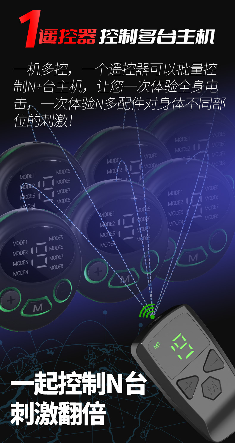 XY-002第二代无线遥控电击情趣主机液晶双屏内置锂电8频19级强度
