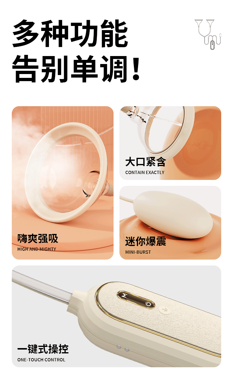 | 8 | 功能及用途, 双罩吮吸+跳蛋震动 |